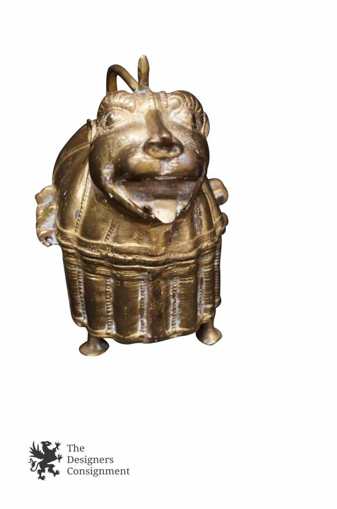This is a fine piece of antique brass. It is a lovely brass figural trinket box that we believe is supposed to depict a monkey or possibly a large cat like a lion or tiger. This is an absolutely beautiful piece and it would make a wonderful addition to your home or collection.