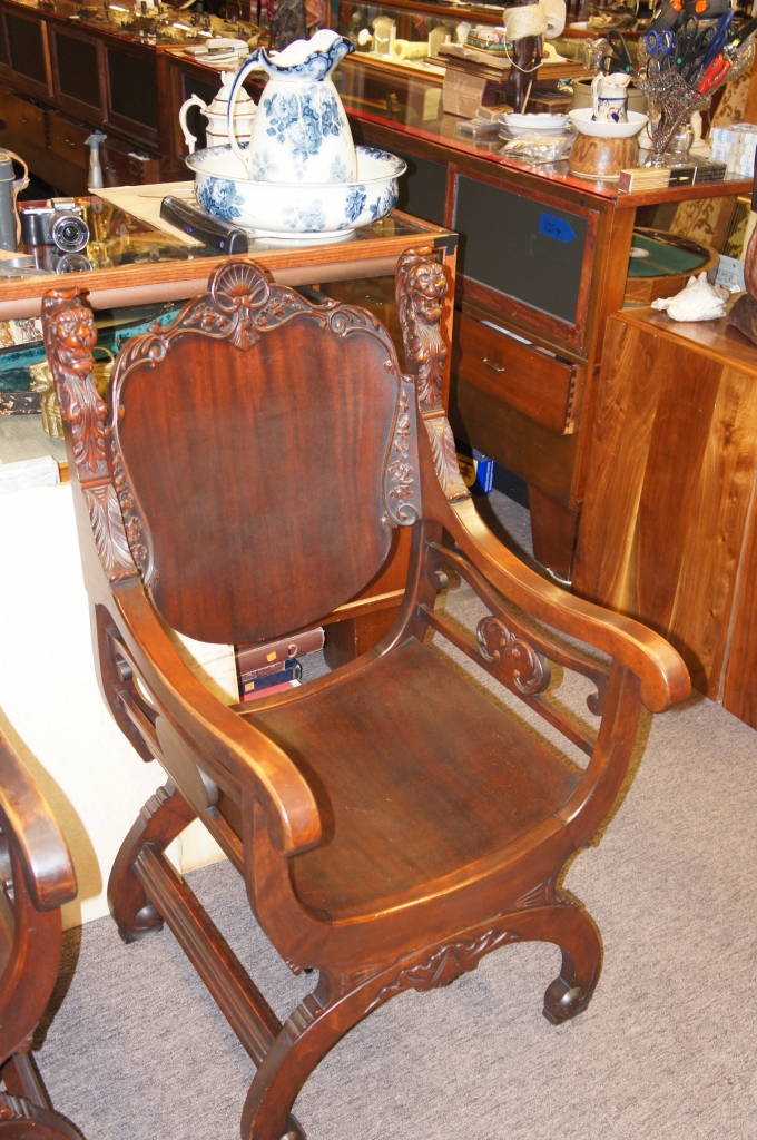 2 Antique Gothic Revival Rosewood Saddle Seat Bishop Chairs Thrones Lion Heads