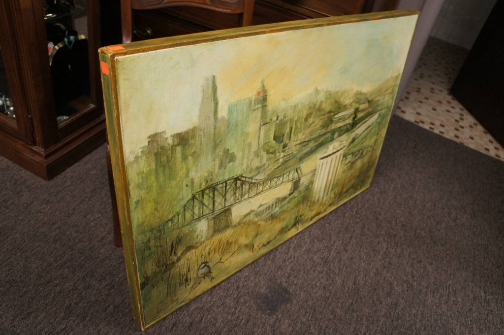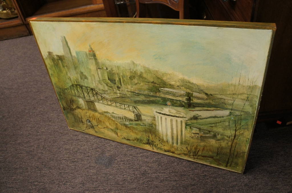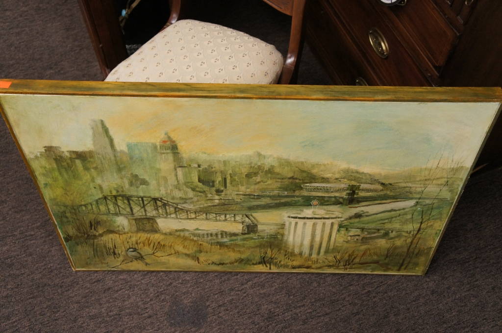 Signed Oil Painting Cincinnati Cityscape Ohio River Kentucky Riverfront Bridge