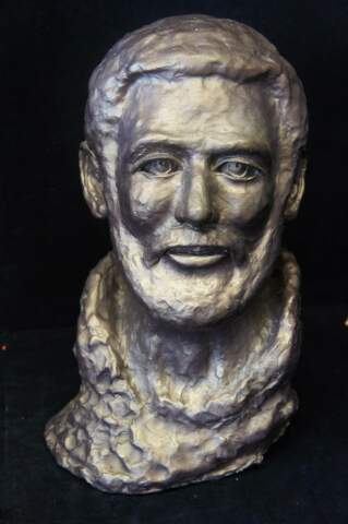 Vintage Bronze Painted Plaster Head Bust Bearded Man Heavy Handmade Sign Andree