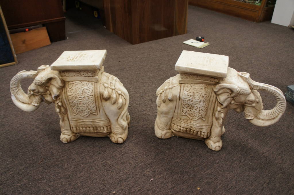 2 Vintage Elephant Garden Stools Oriental Yard Seat Chair Asian Plant Stand Base
