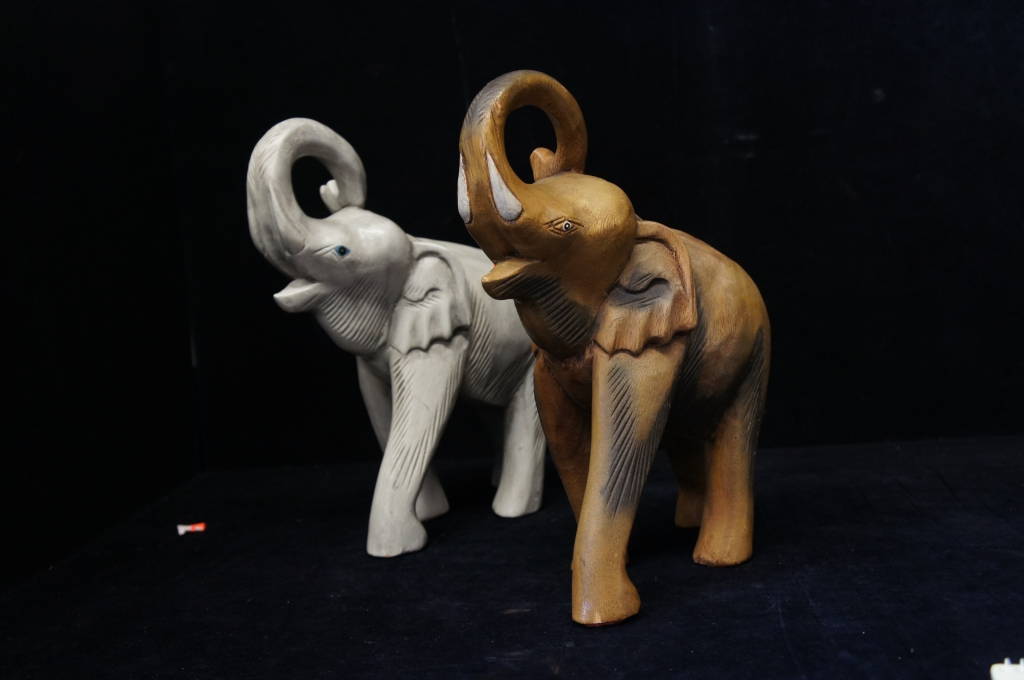 Unique Pair Solid Wood Carved Elephant Figurine Vintage Statue Display Fun Gift