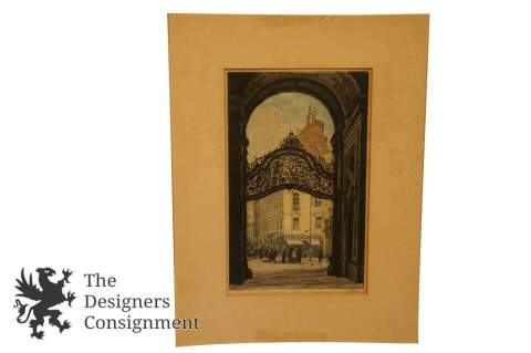 A lovely hand colored etching of the gate to Hofburg Palace in Vienna. This piece is signed. An absolutely beautiful piece and it would make a wonderful addition to your home or collection. Very similar to theMichaeler Tor etchings by Hans Figura and Luigi Kasimir