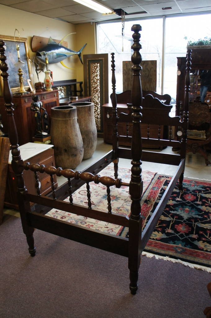 Antique Solid Walnut Wood Twin Size Turned Poster Bed Four Post Federal Style