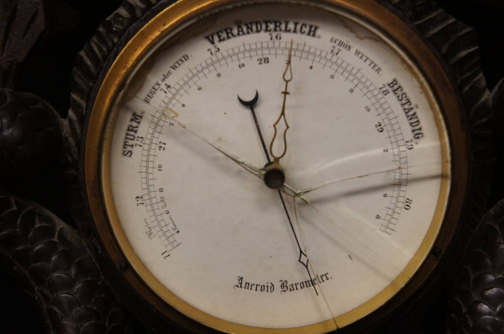 Antique Aneroid Wall Hanging Beveled Glass Barometer Ebony Dolphin Fruit Frame