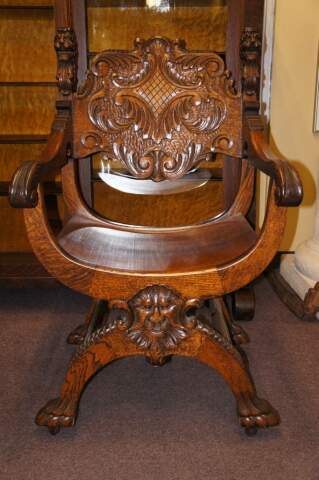 Antique Gothic Revival Oak Saddle Seat Bishop Chair Thrones Lion Heads Casters1099