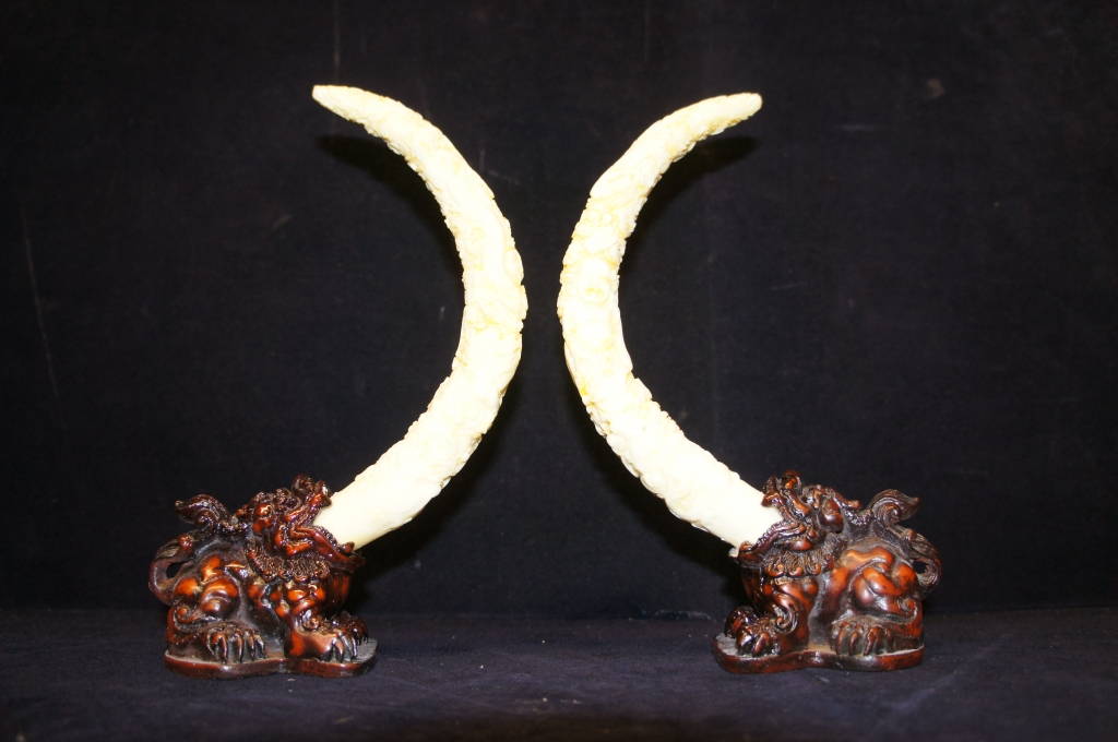 Vintage Resin Foo Dog Figurines With Intricate Tusks Buddha Dragon Fu Lion Pair