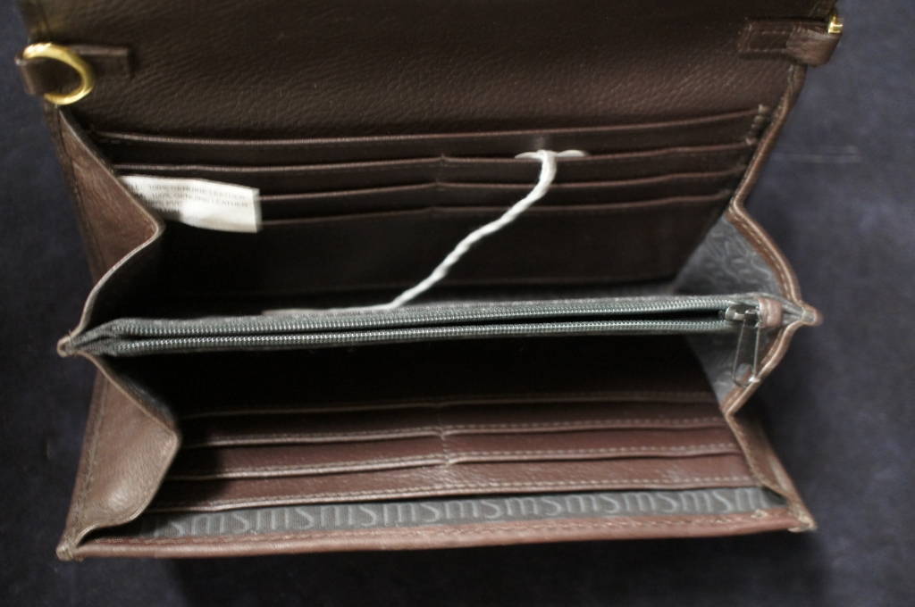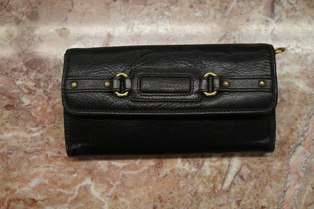 Stone Mountain Envelope Wallet Black Leather Organizer Check Book Zipper Clutch