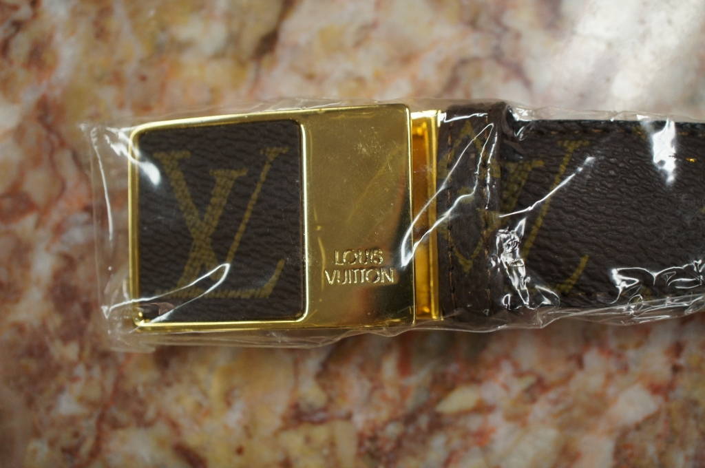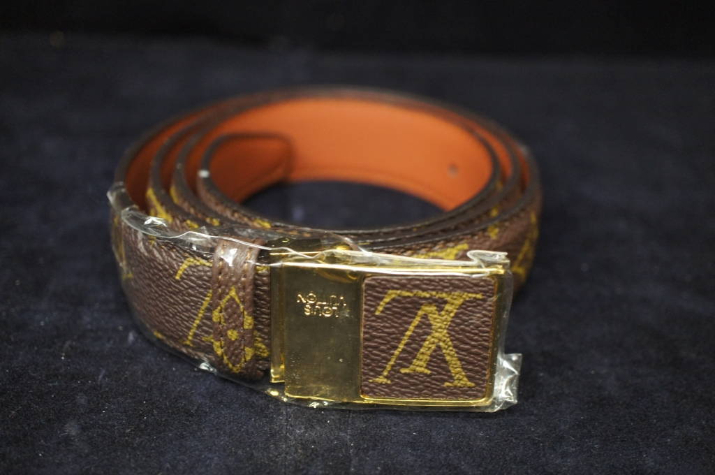 Vintage Louis Vuitton Belt Authentic Monogram Canvas W/ Brass Buckle 44" France, fake
