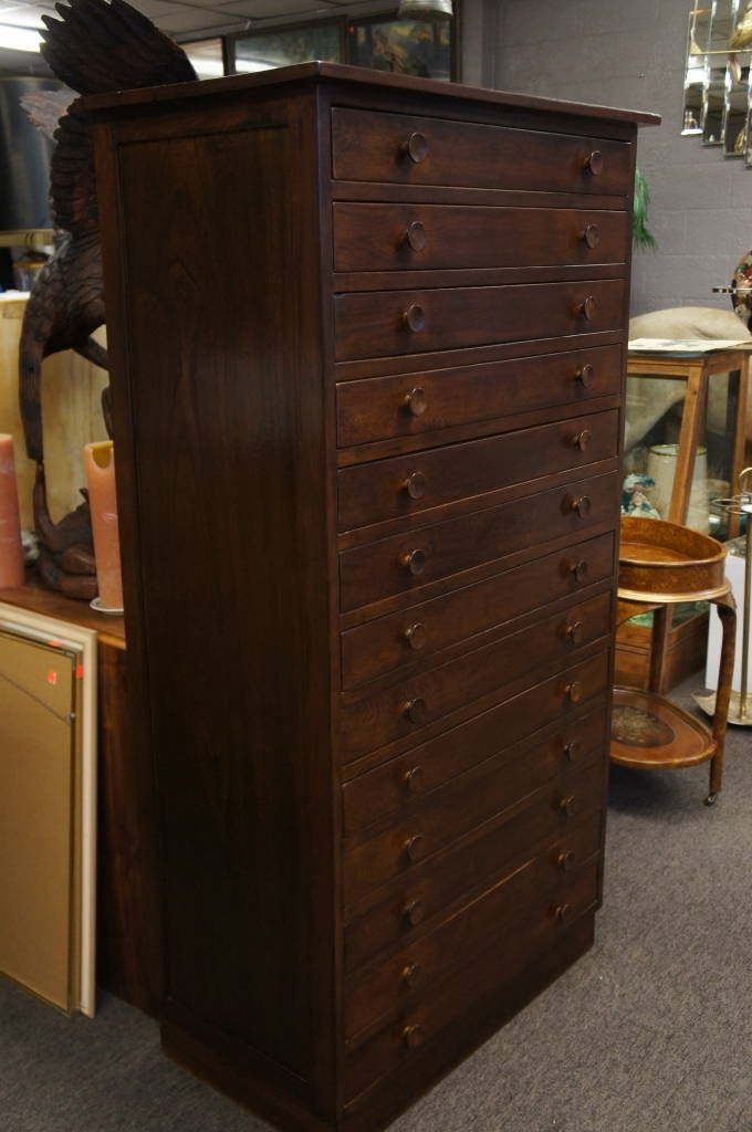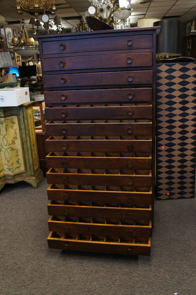 64" Large 13 Drawer Cabinet Letterpress Type Apothecary Spice Industrial Oak