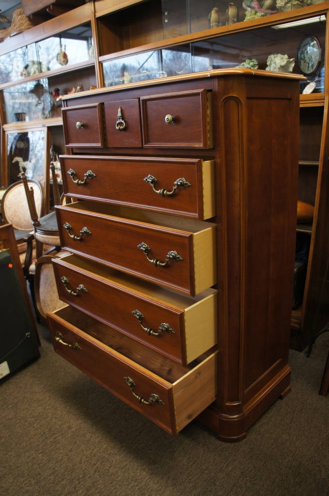 Stanley Furniture Distressed Maple High Tallboy Dresser 7 Drawer Cedar Lined