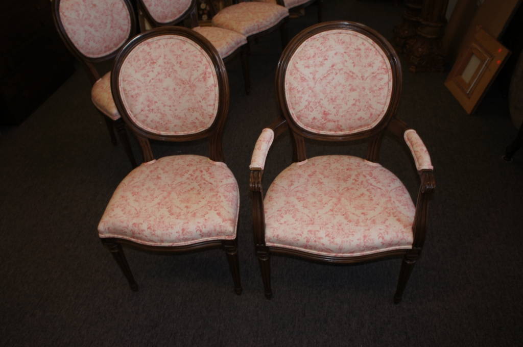 6 Vintage Oval Back Back Floral Upholstered Dining Room Chairs Fluted Leg Baker?