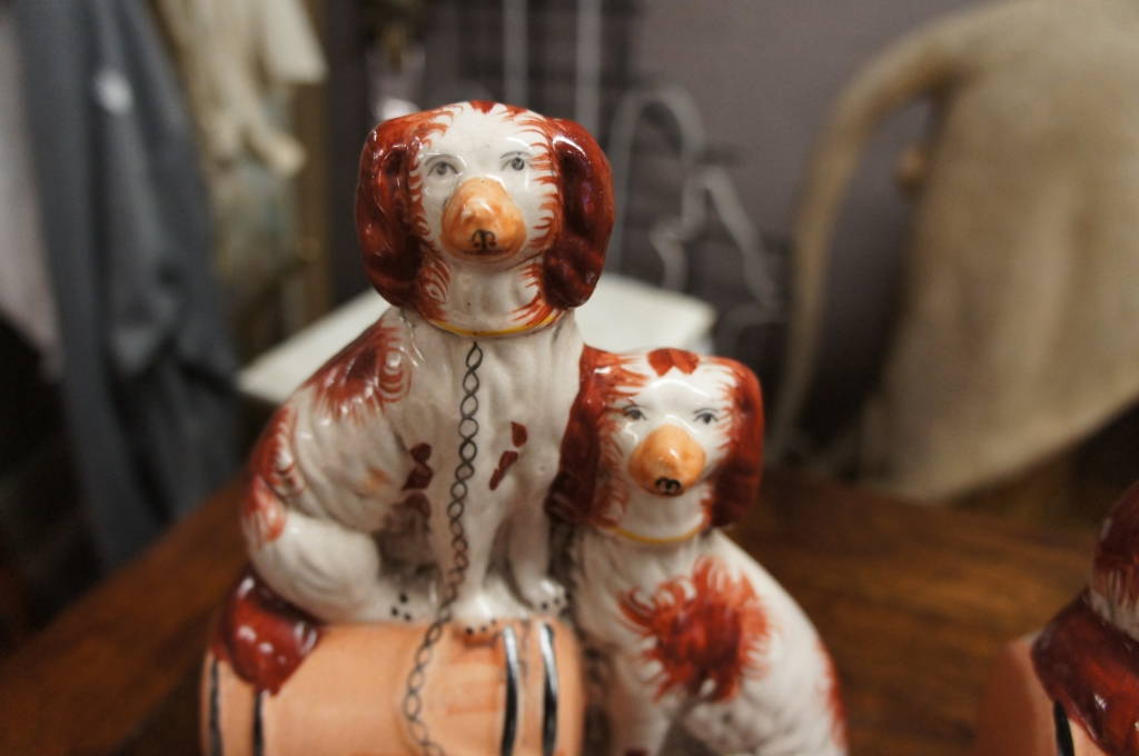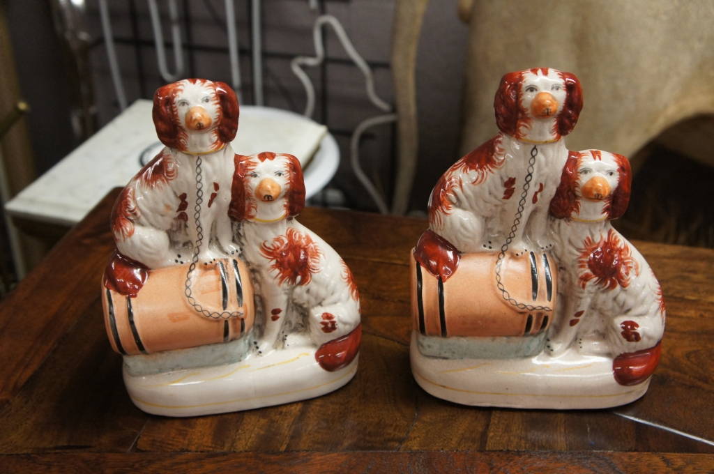 2 English Traditional Antique Staffordshire Dogs W/ Barrel White Spaniel 9