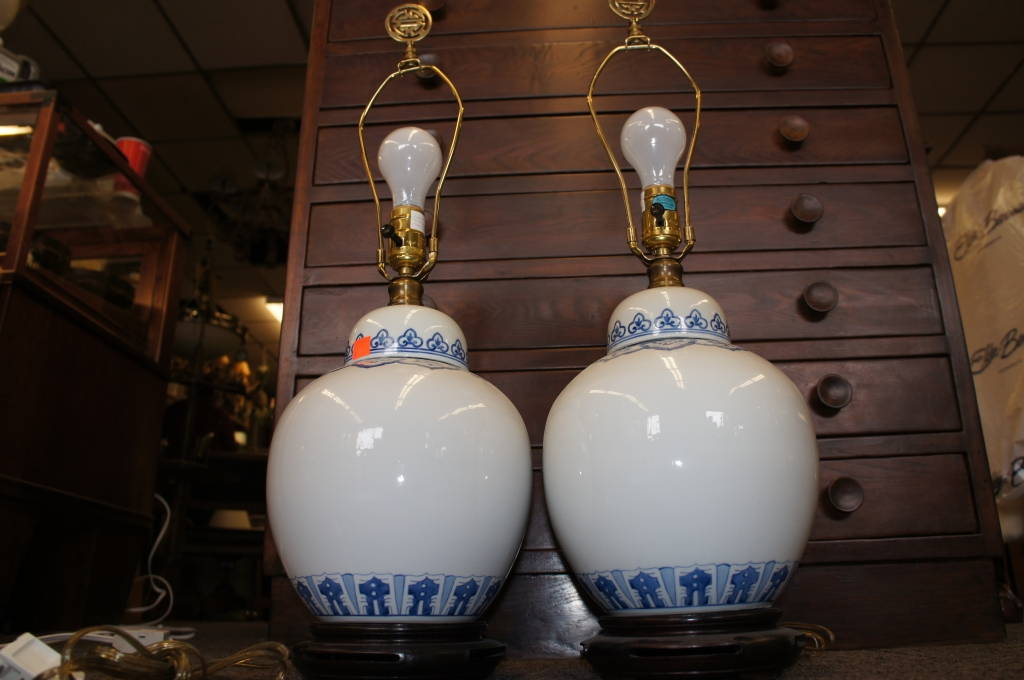 Handmade Maitland Smith Vintage Blue White Porcelain Urn Lamps Oriental Painted