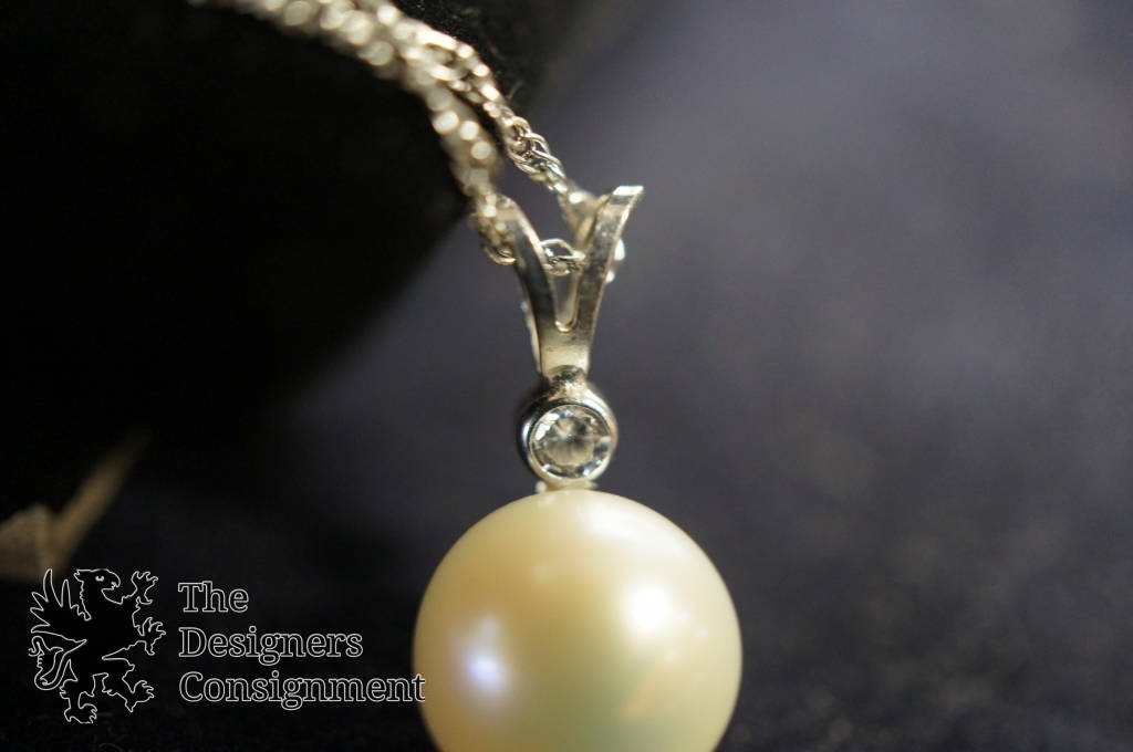 9mm Pearl Diamond Necklace Chain Pendant Honora Sterling Silver .925 Helzberg