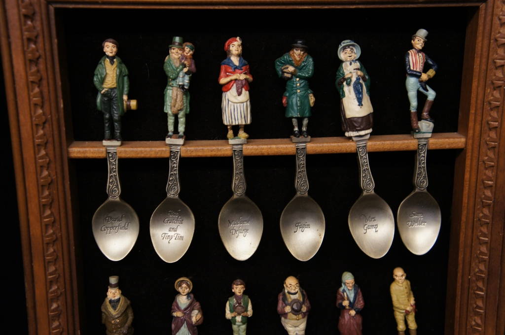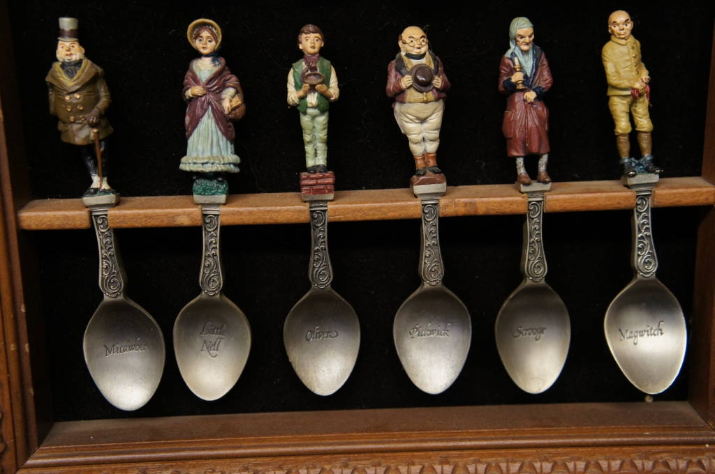 12 Franklin Mint Dickens Characters Spoons Collection Shadow Box Christmas Carol