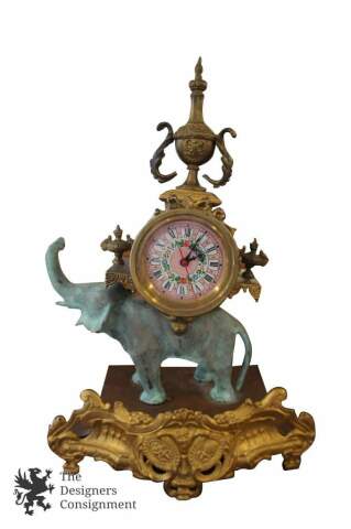 Here is a wonderful Louis XV style reproduction clock. Featuresa pink face, painted, elephant and intricate base as well as top. A fun addition to any home!