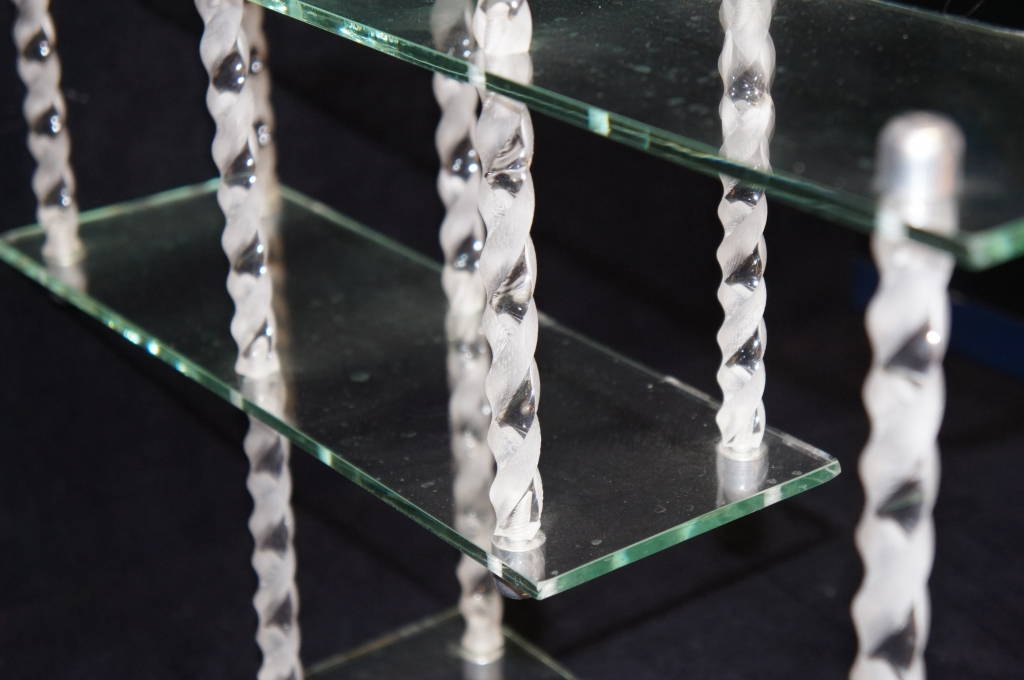 Unique Mid Century Modern Lucite & Glass Hanging Shelf Curio nick nack Shelving