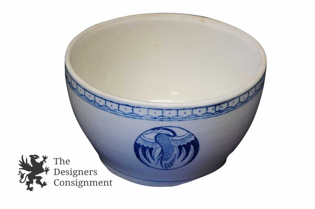 This is a gorgeous piece of Chinese porcelain. It is a vintage white and blue rice bowl that is decorated with blue cranes on a white background. This is an absolutely beautiful piece and it would make a wonderful addition to your home or collection.