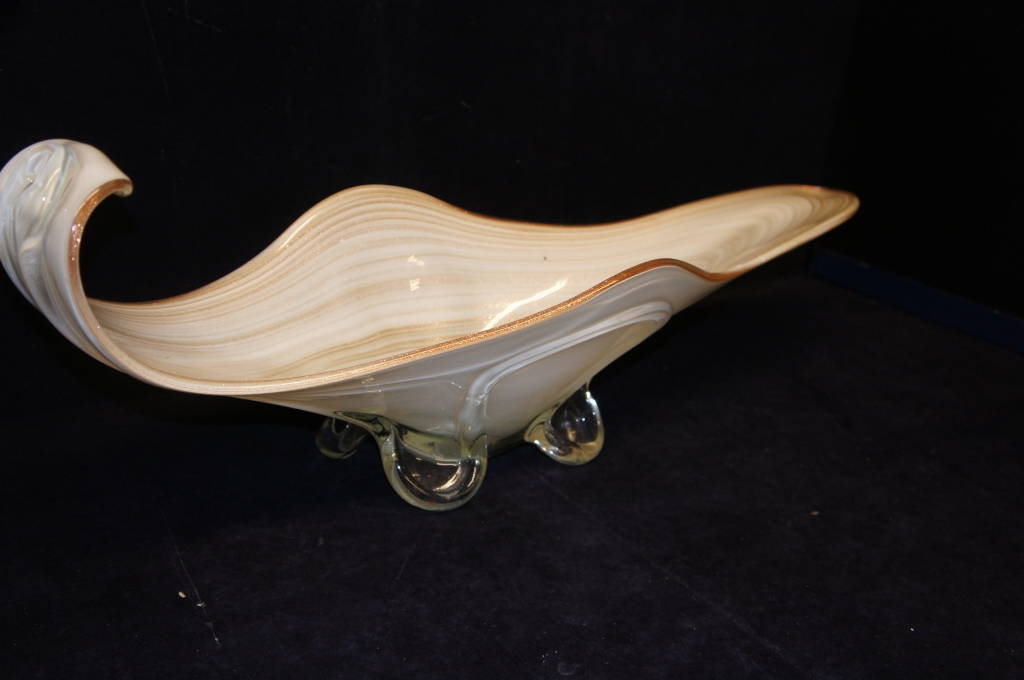 White Gold Swirl Opalescent Murano Art Glass Free form Console Bowl Centerpiece