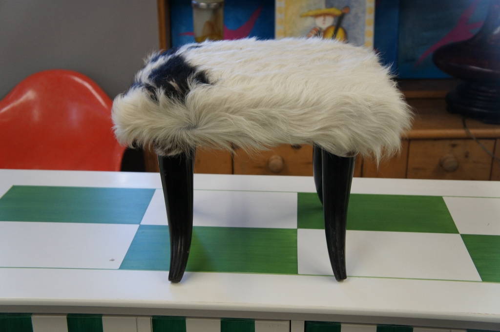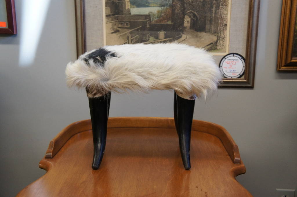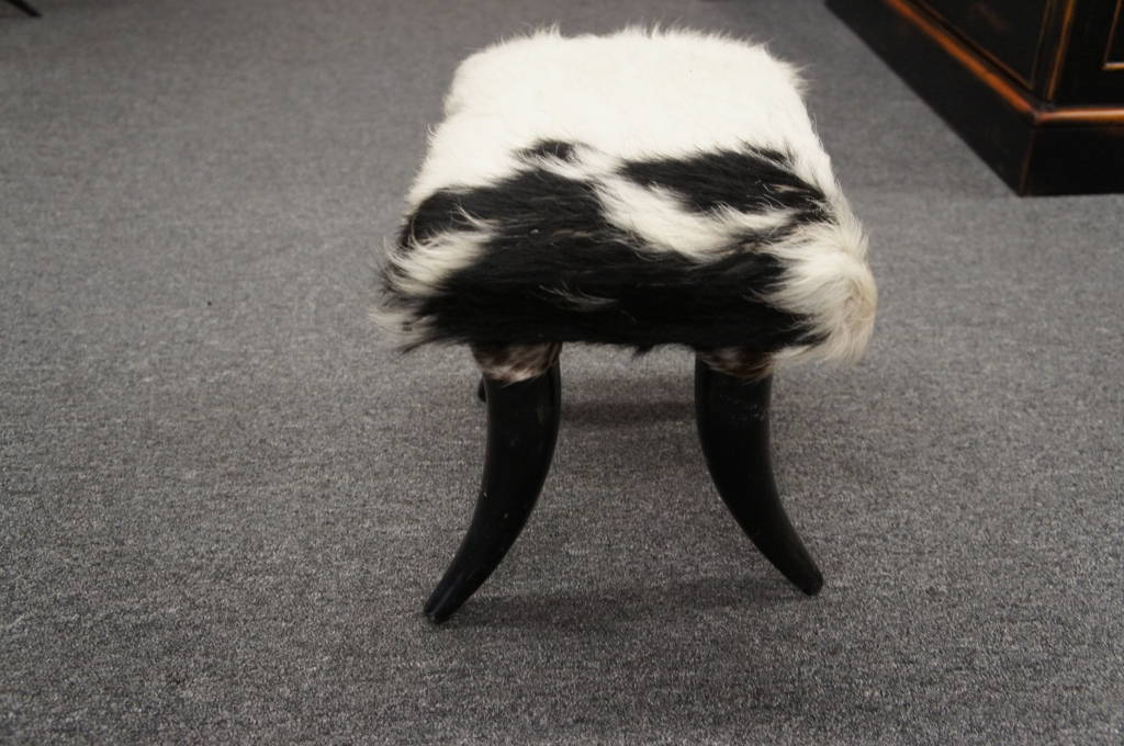 Vintage Cow Horn & Cowhide Upholstered Footstool Ottoman Seat Bench Contemporary