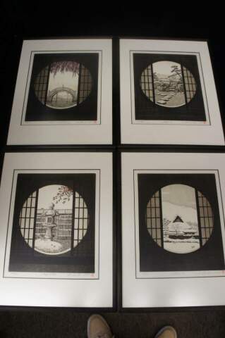 4 VTG Hiroto Norikane Etching Japan Framed Matted Limited Edition Four Seasons