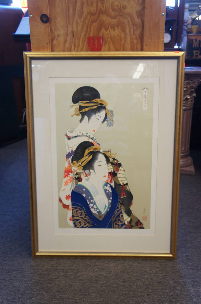 Vintage Haruyo Morita Signed Limited Edition Woodblock Print Geishas Japanese