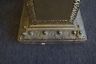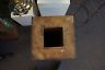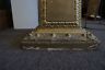Age related wear. Some of the gold paint is flaking off the gesso. Mostnoticeablyon the base. Otherwise there is a circular stain on the top. The base was made with two solid pieces of wood. If you look at the 10th picture you can see the separation between the two pieces of wood. See Picture and feel free to ask questions.