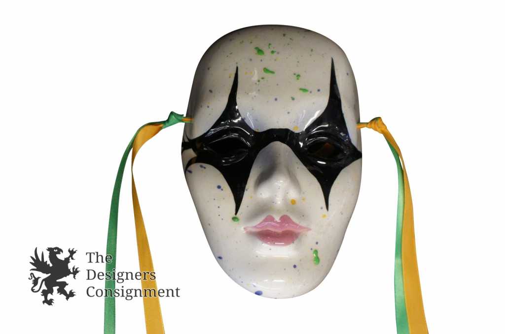 Here are three sweet vintage ceramic masks. Two are mardi gras masks and the third says ceramica di Bassano. They feature hand pained design and were formed by hand and glazed.