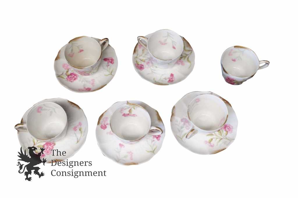 Here is a wonderful antique tea setting of C. Ahrendeldt limoges. Features 6 Demitasse & 5 Saucers. Each one is slightly different in pattern. A wonderful addition to any home or collection.