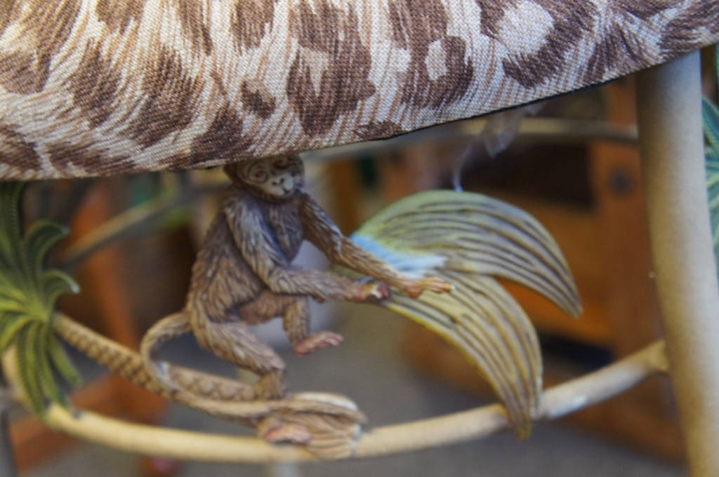 Unique Contemporary Monkey & Banana Wrought Iron Leopard Print Seat giving back