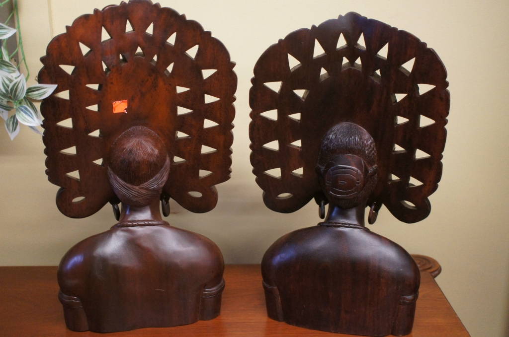 Huge Polynesian Carved Teak Wood Bust Bali Tiki Indonesian Bride Groom Statues