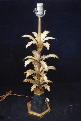 Stunning Hollywood Regency Gold Leaf Marble Table Lamp Made in Italy Vintage