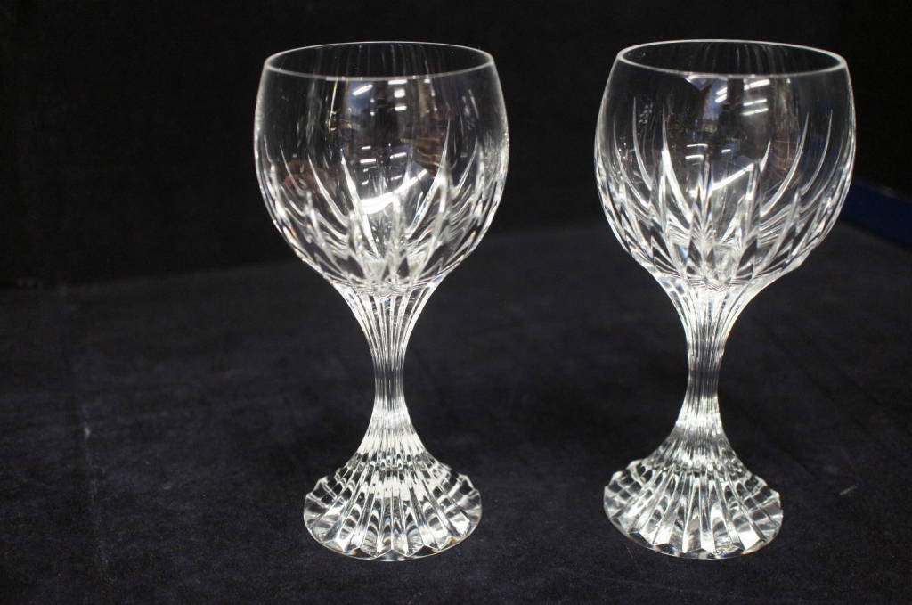 2 Baccarat Crystal Massena 5 7/8" White Wine Goblets Bordeaux Stemware Glasses