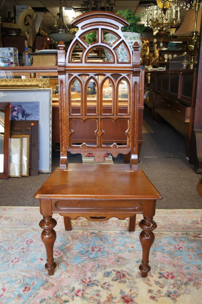 Here is a beautiful chair from theVictorianera. Features aRenaissanceRevival or Neoclassical style. The seat back is handplanedand includes an arcade mid way up the back. The seat flips up to reveal a secret compartment. Although its not so secretive if you don't have a cushion over it! A wonderful addition to any home or collection.