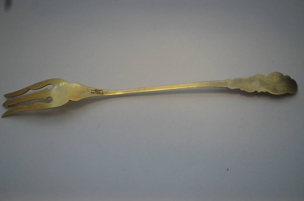 Very Rare Sterling Silver Custom Enameled Olive Pickle Cocktail Fork Blackinton