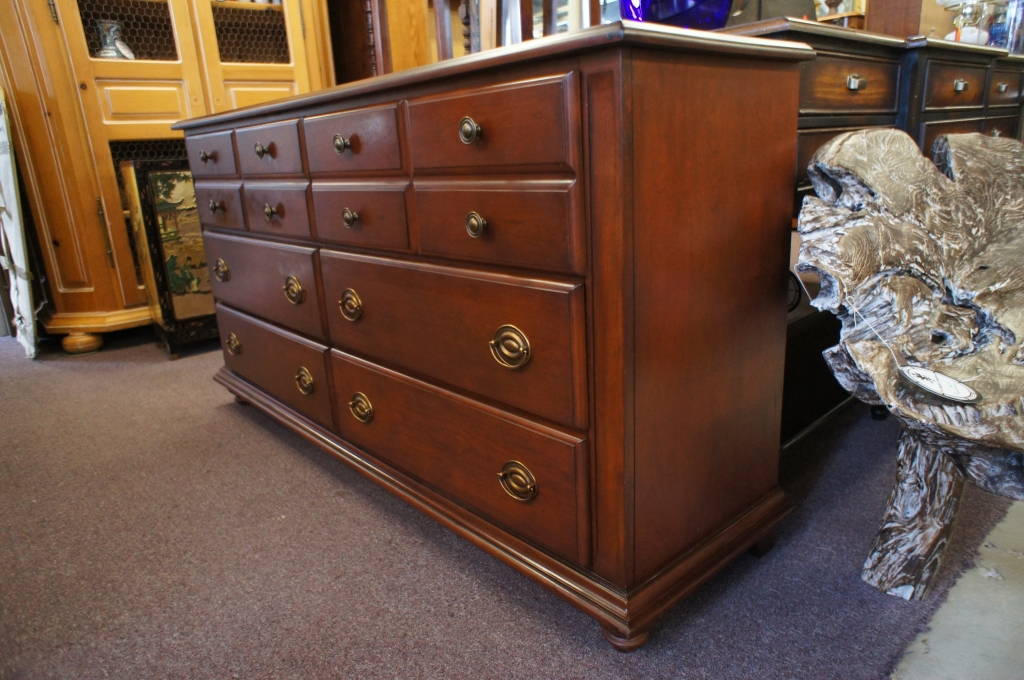 Vintage Broyhill Furniture Mahogany 6 Drawer Traditional Bedroom Dresser Brass