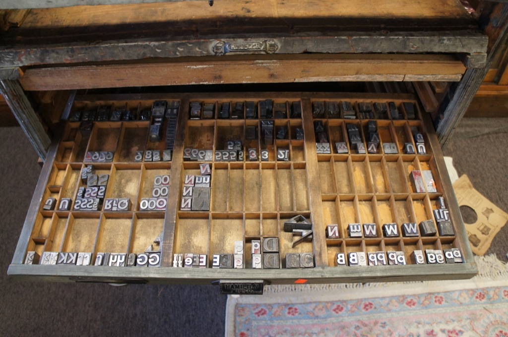 Vintage Letter Press Type Set and Drawers, stand was broken