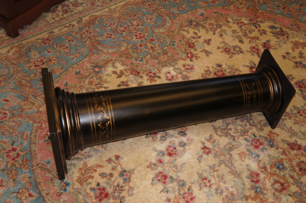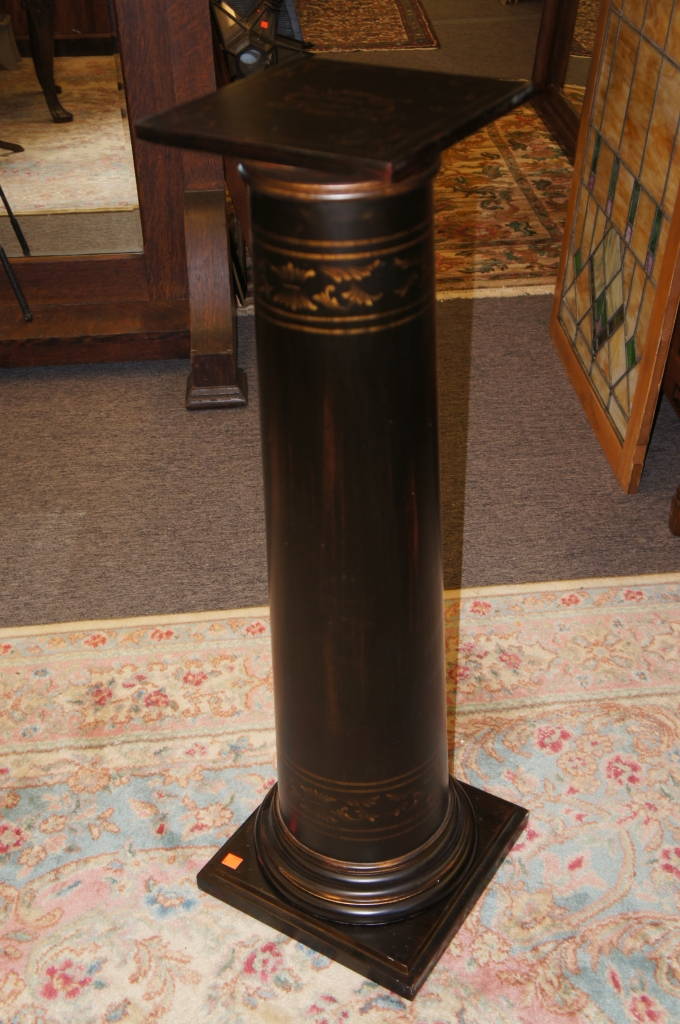French Country Distressed Architectural Style Back & Gold Pedestal Plant Stand