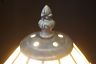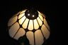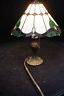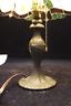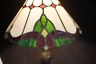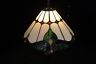 This is a gorgeous Tiffany style lamp with a glass shade. This piece This piece has a metal body to it and a stained glass shade in an Art Nouveau style. This is an absolutely beautiful piece and it would make a wonderful addition to your home or collection.