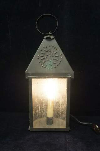 Vintage Pierced Tin Electrified Lantern Outdoor Indoor Hanging Light Lamp