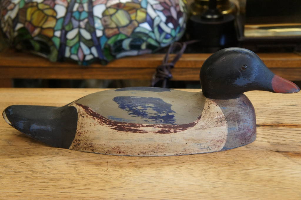 Antique Hand Painted & Carved Duck Decoy Signed CWH Primitive Folk Art Glass Eye