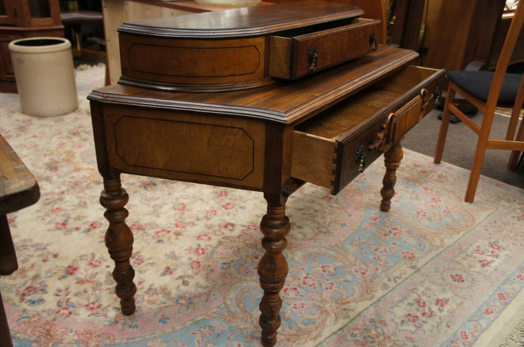 A beautiful piece of Jacobean style furniture. Features mahogany and maple veneer. A great silverware chest for any home!