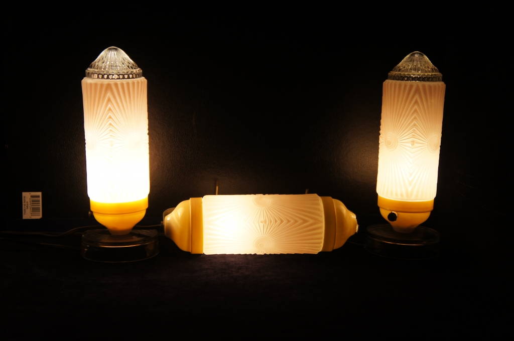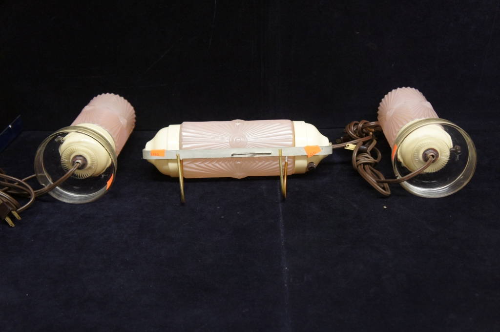 Art Deco Pink Glass Boudoir Vanity Lamps & Desk Light Antique Torpedo Bullet