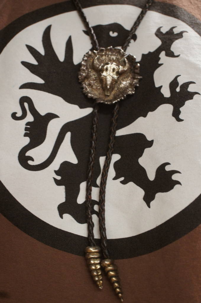 Don Burda Vintage 1985 Bolo Tie Cast Silver Cow Skull Rattlesnake 6/100 Leather