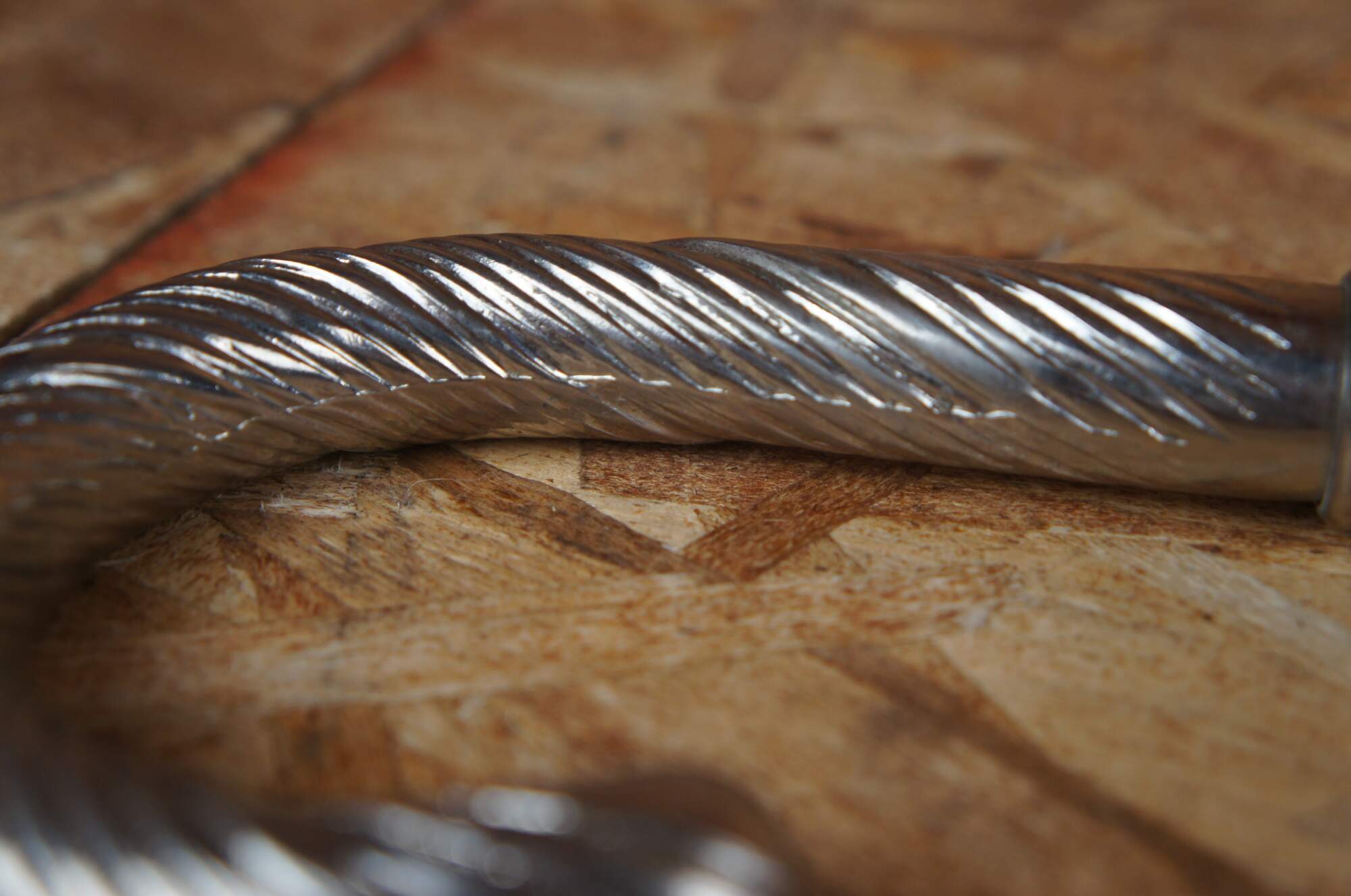 Vintage walking stick cane made of a plastic composit material with twisted silver plated handle.