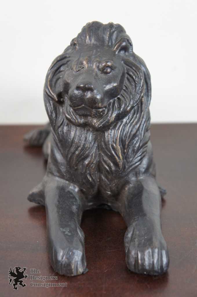 Vtg Decorative Bronze Figural Lion Kneeling Bookend Ornate Display Paperweight
