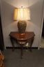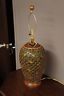 Here is a lovely lamp with exquisite attention to detail. Features a painted base wrapped in wooden basket like design with wicker around the top. A true attention grabber