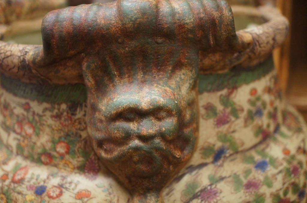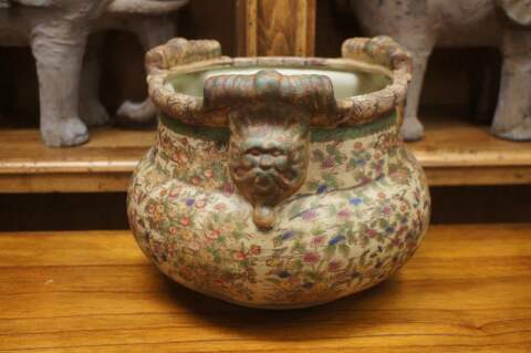 Oriental Chinoiserie Jardiniere Floral Dragon & Butterfly Lion Head Accents