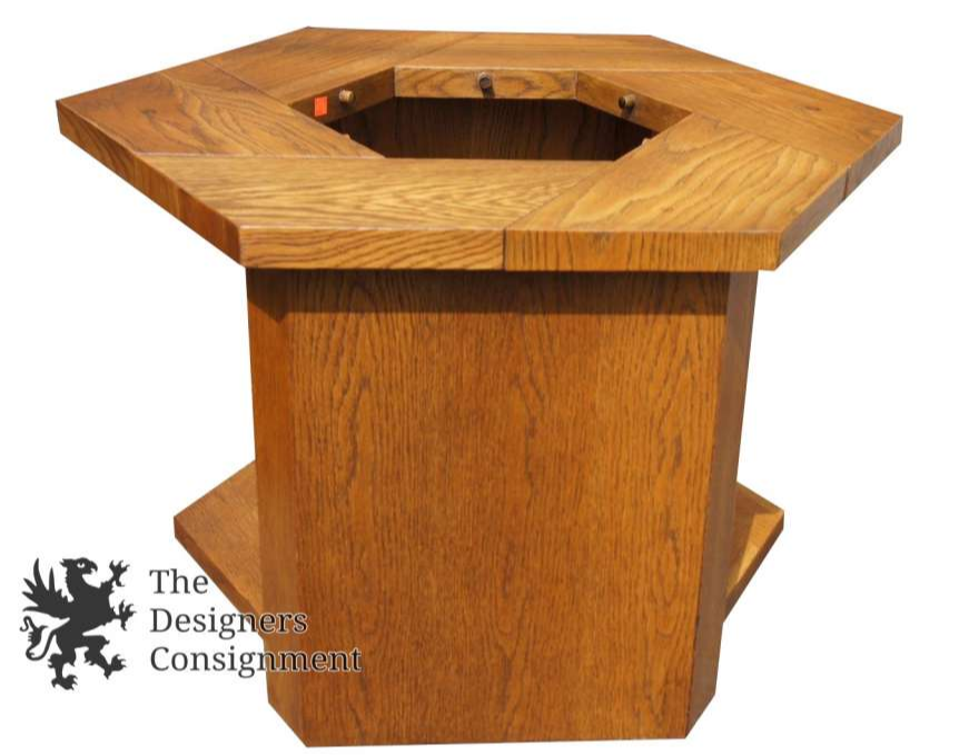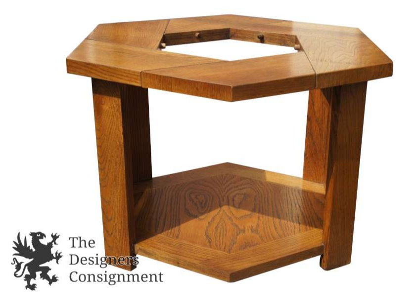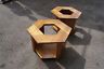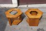 Here is a unique pair of Lanes Hexagon Tables. A rare table that is often only seen in singles. This pair is missing the original glass which will need to be replaced